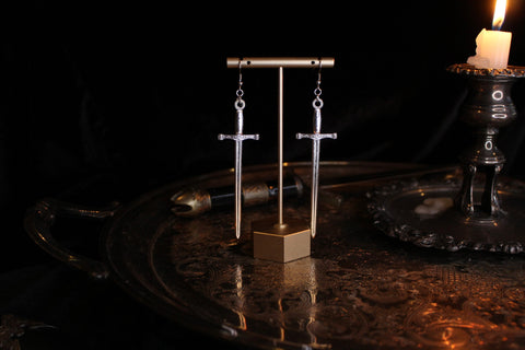 These cuties are larger than my other mini swords but definitely still miniature. They are about 2 1/2 inches long, on me they don’t touch my shoulders.