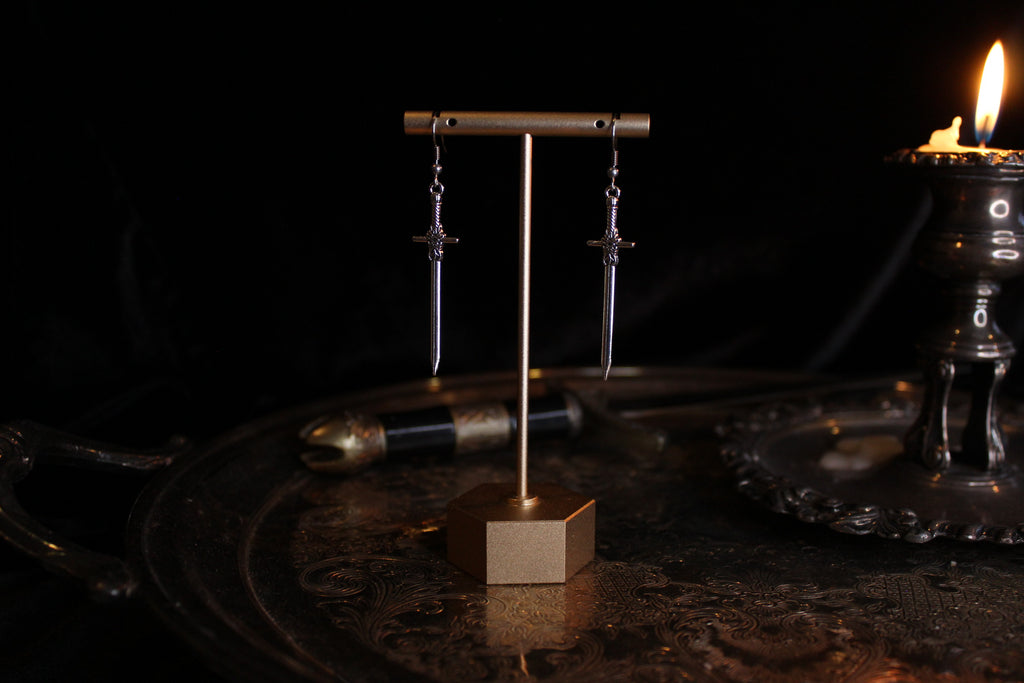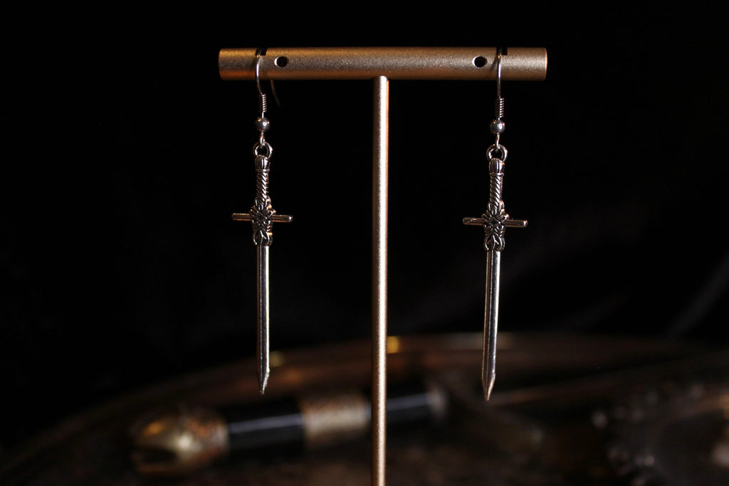 Tiny little swords, made into earrings using hypoallergenic hooks.