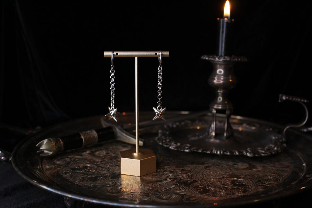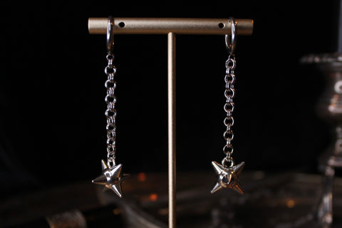 Spiky balls, made into hella cool earrings using hypoallergenic hoops and chain.
