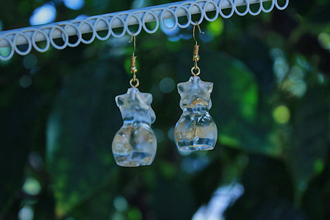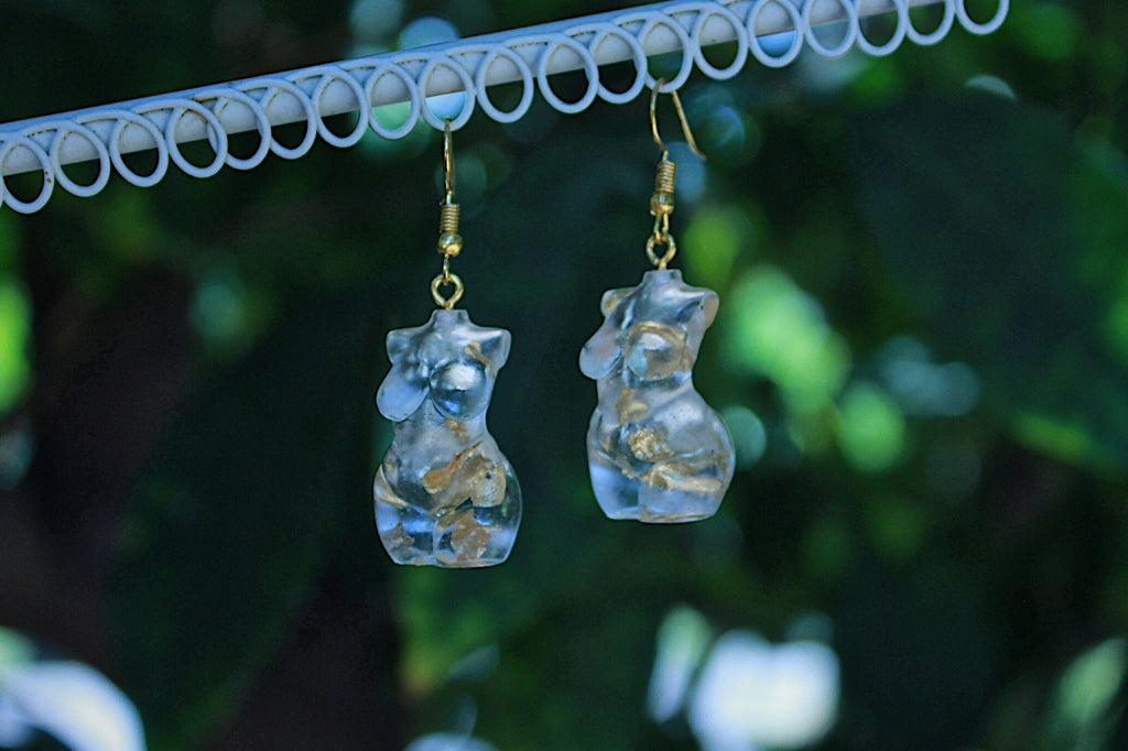 Miniature Plus Sized resin Goddesses made into earrings using hypoallergenic hooks and findings.