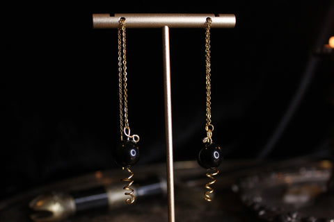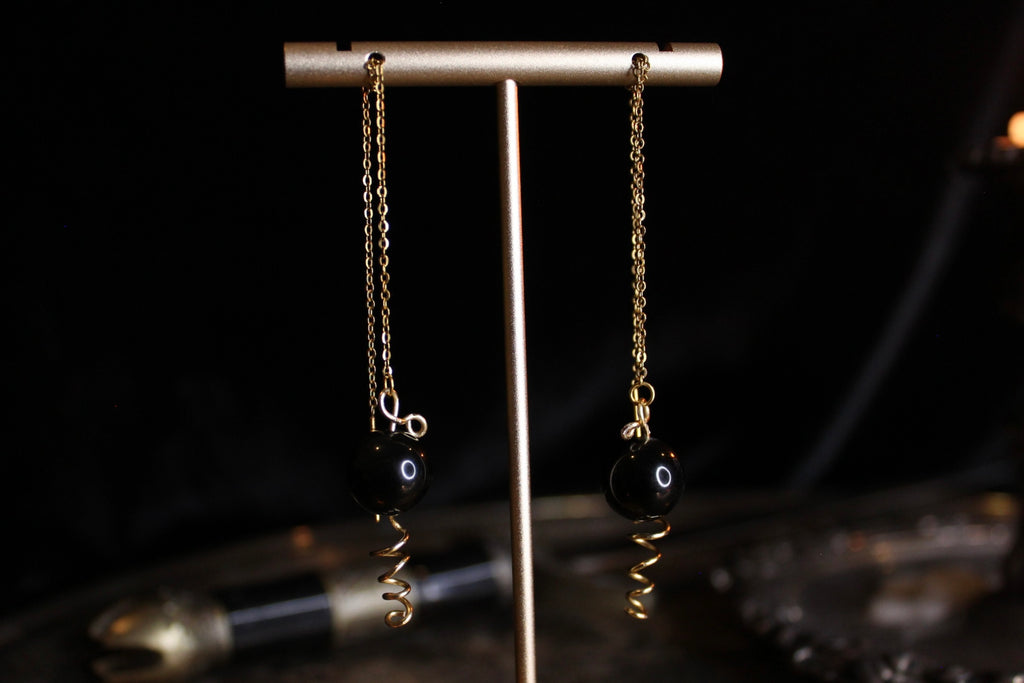 Obsidian beads made into earrings using hypoallergenic wire and threader hardware.