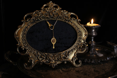Gold Hand and Hand Mirror Slip Chain Necklace