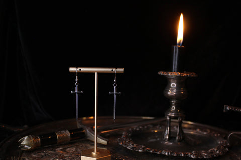 Tiny little swords, made into earrings using hypoallergenic hooks.